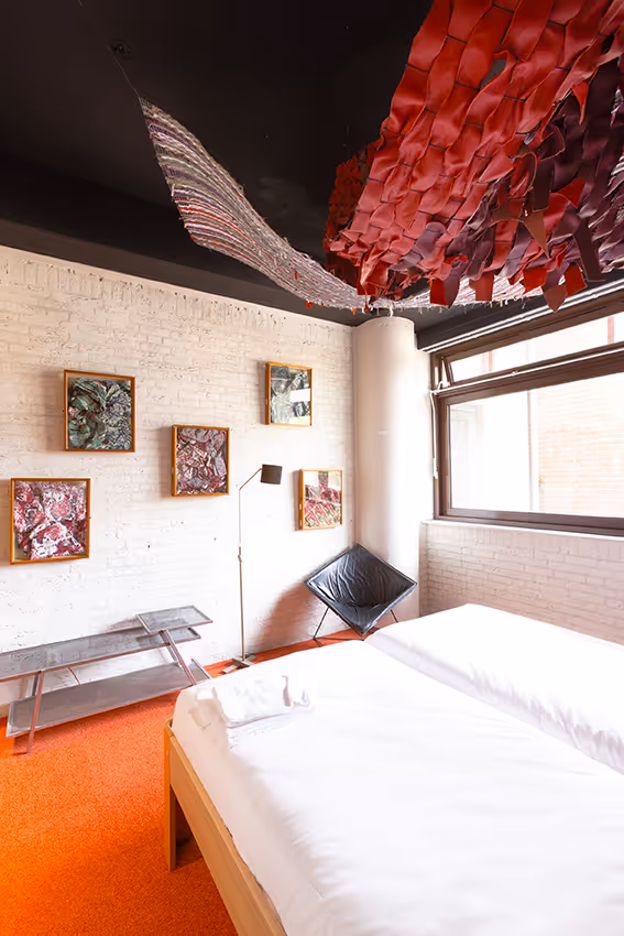 De kamer die zij gecreëerd heeft, getiteld Herweven, is een plek van verbeelding waarin kunst en duurzaamheid samenkomen. Verschillende werken zijn ontstaan met behulp van een weefgetouw, waarbij losse resten een nieuw geheel vormen. Hiermee probeert de kunstenaar de schoonheid van restmaterialen te laten zien. Elk werk is opgebouwd uit restmaterialen die een tweede leven krijgen, zoals kledingresten, leerresten van het meubelbedrijf Gelderland en restgarens van weefmachines.