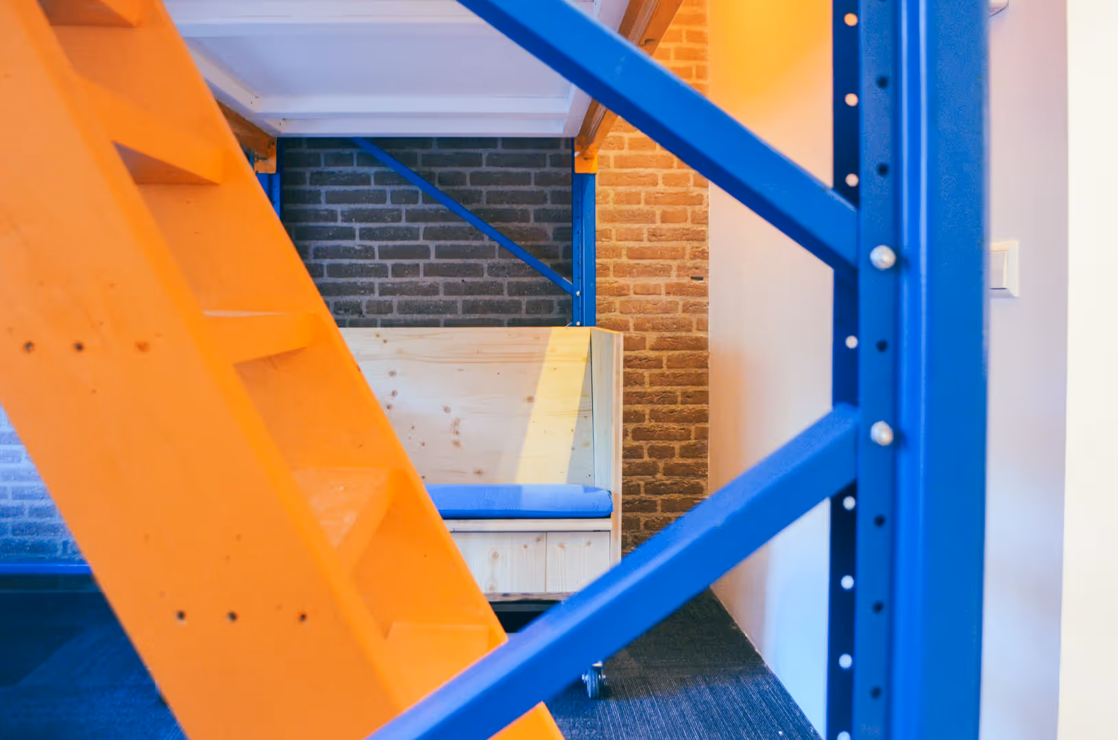 Het ontwerp van de kamer refereert naar een magazijn. Gemaakt van open structuren, zichtbaar en modulair opgebouwd met hergebruikte materialen. De stellages doen denken aan een depot, maar zijn nu bedoeld voor mensen in plaats van spullen. Het resultaat ervaring waarin je als gast letterlijk onderdeel wordt van een circulair systeem. De hotelkamer dient als een installatie waar gasten tijdelijk worden opgeslagen, om vervolgens met nieuwe energie en ideeën zichzelf weer te verplaatsen.