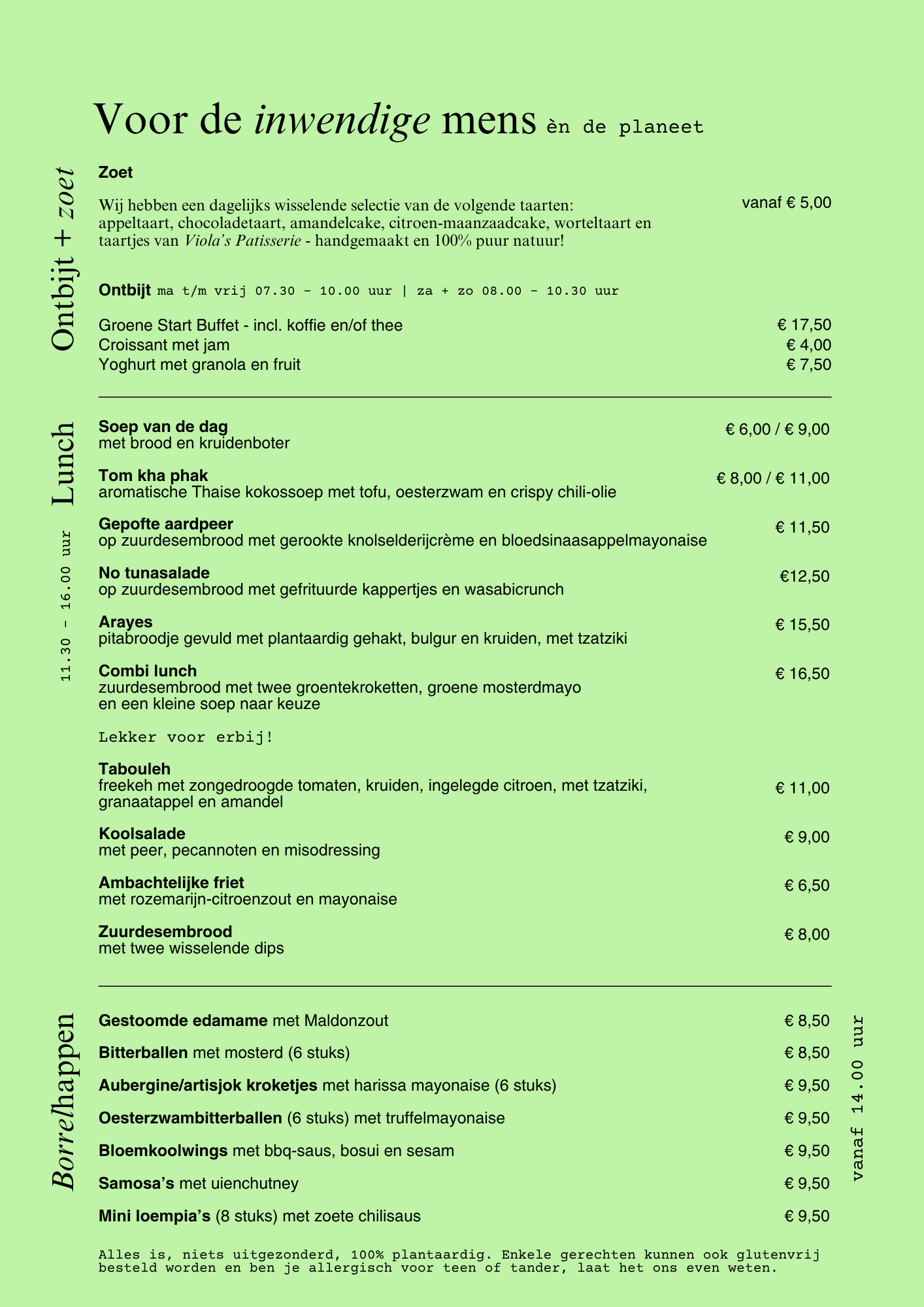 Onze menukaart