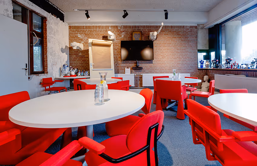 In deze ruimte passen naast de robots ook nog 20 mensdieren aan tafel of 16 in een kringopstelling. Er staat een groot beeldscherm waar je een laptop makkelijk op aansluit en er is glutenvrije WiFi!