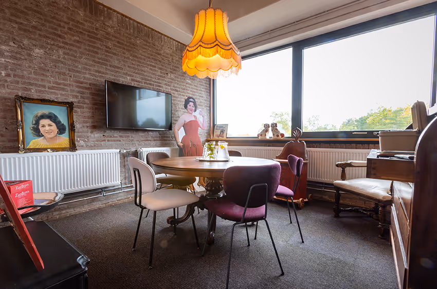 Deze klein maar fijne kamer is geschikt voor kleinere groepen van max. 6 personen, één op één sessies of als break-out room. Er is een beeldscherm waar je een laptop makkelijk op aansluit. Lunch en diner bijboeken dat kan natuurlijk, of nog beter passend bij de kamer, een borreltje met bitterballen.