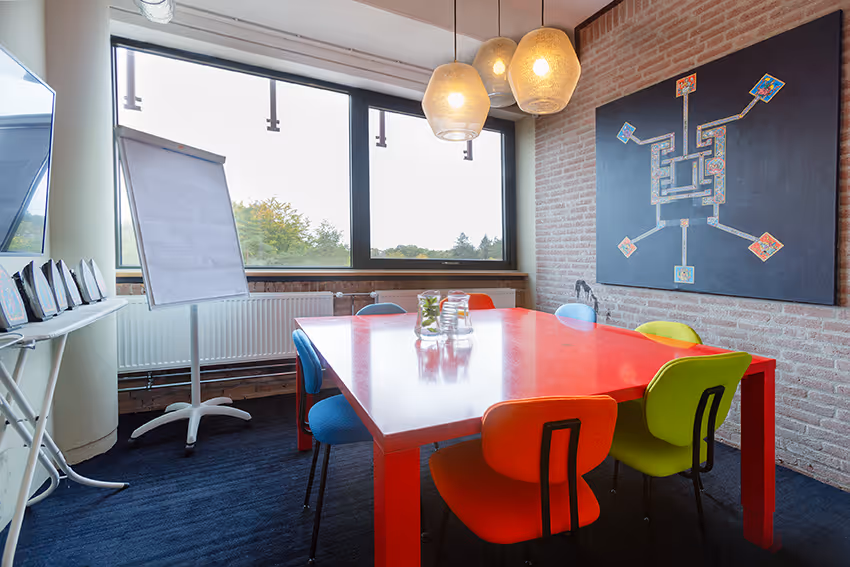 Het is een inspirerende ruimte, anders dan alle andere vergaderkamers waar je ooit bent geweest. De kamer is geschikt voor kleinere groepen van max. 8 personen, één op één sessies of als break-out room. Er staat een beeldscherm waar je een laptop makkelijk op aansluit en er is glutenvrije WiFi!