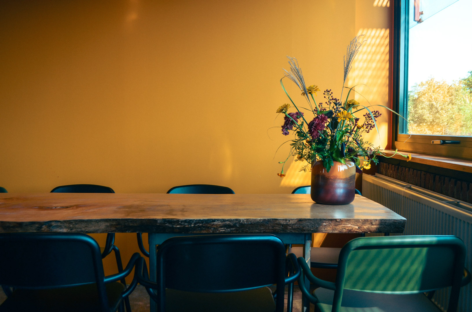 Op de bovenste verdieping vind je Kantinus. En die is sfeervoller dan het klinkt. Een kantineruimte ja, maar dan het soort waar je wél een feestje wilt geven. Er is ruimte voor ongeveer 80 mensen in borrelsetting en zittend hebben we plek voor 30. Je kan je feestje op zonnige dagen ook nog eens doortrekken naar het bijbehorende dakterras met fabuleus uitzicht over het bos. Te boeken vanaf 45 personen.